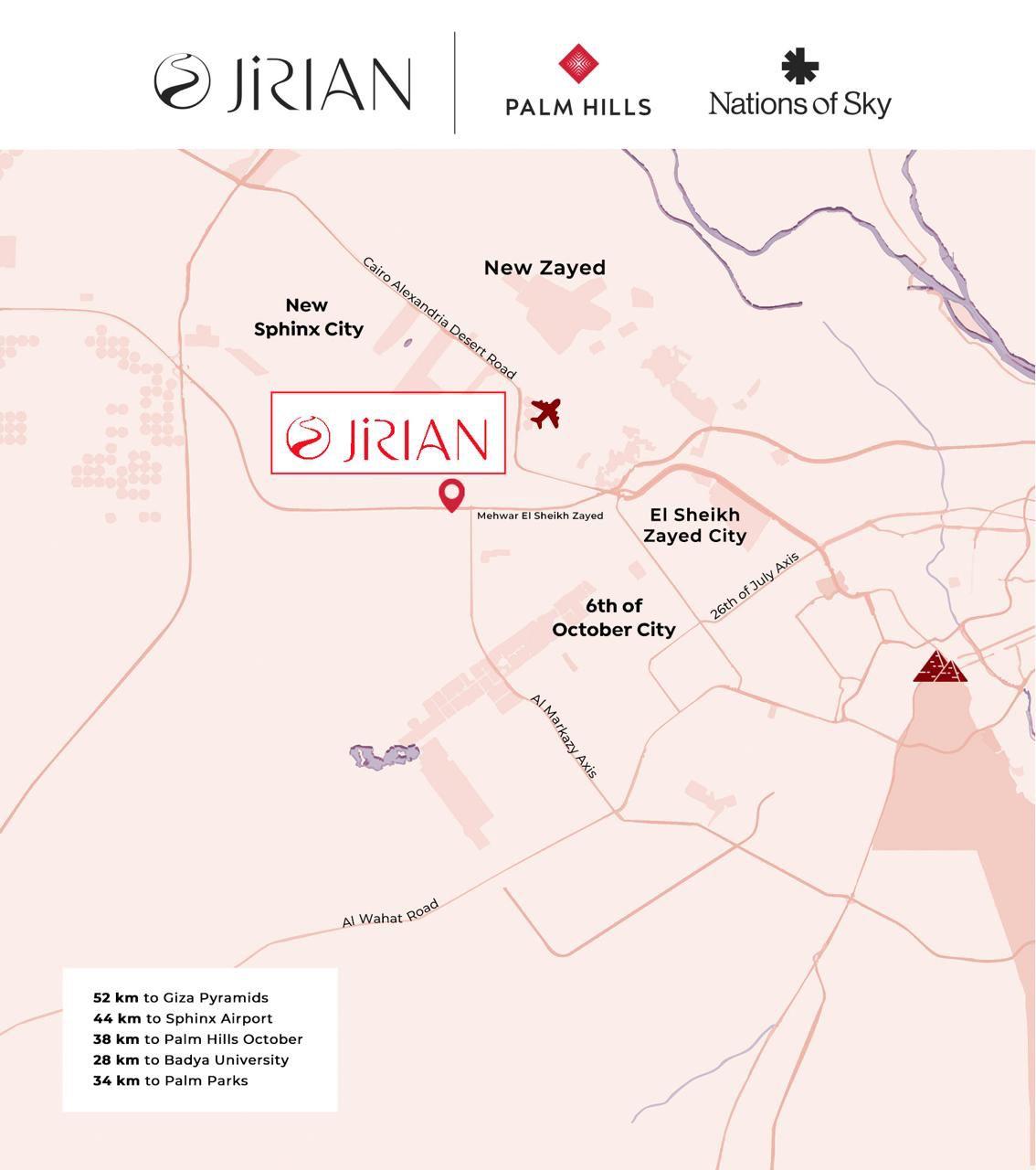 At the heart of Sheikh Zayed’s most coveted crossroads, Jirian Palm Hills redefines connectivity and prestige. With prime frontage on the Middle Ring Road, this address places you mere moments from Sphinx International Airport, the Grand Egyptian Museum, and the vibrant core of Old Sheikh Zayed—making every destination effortlessly within reach.